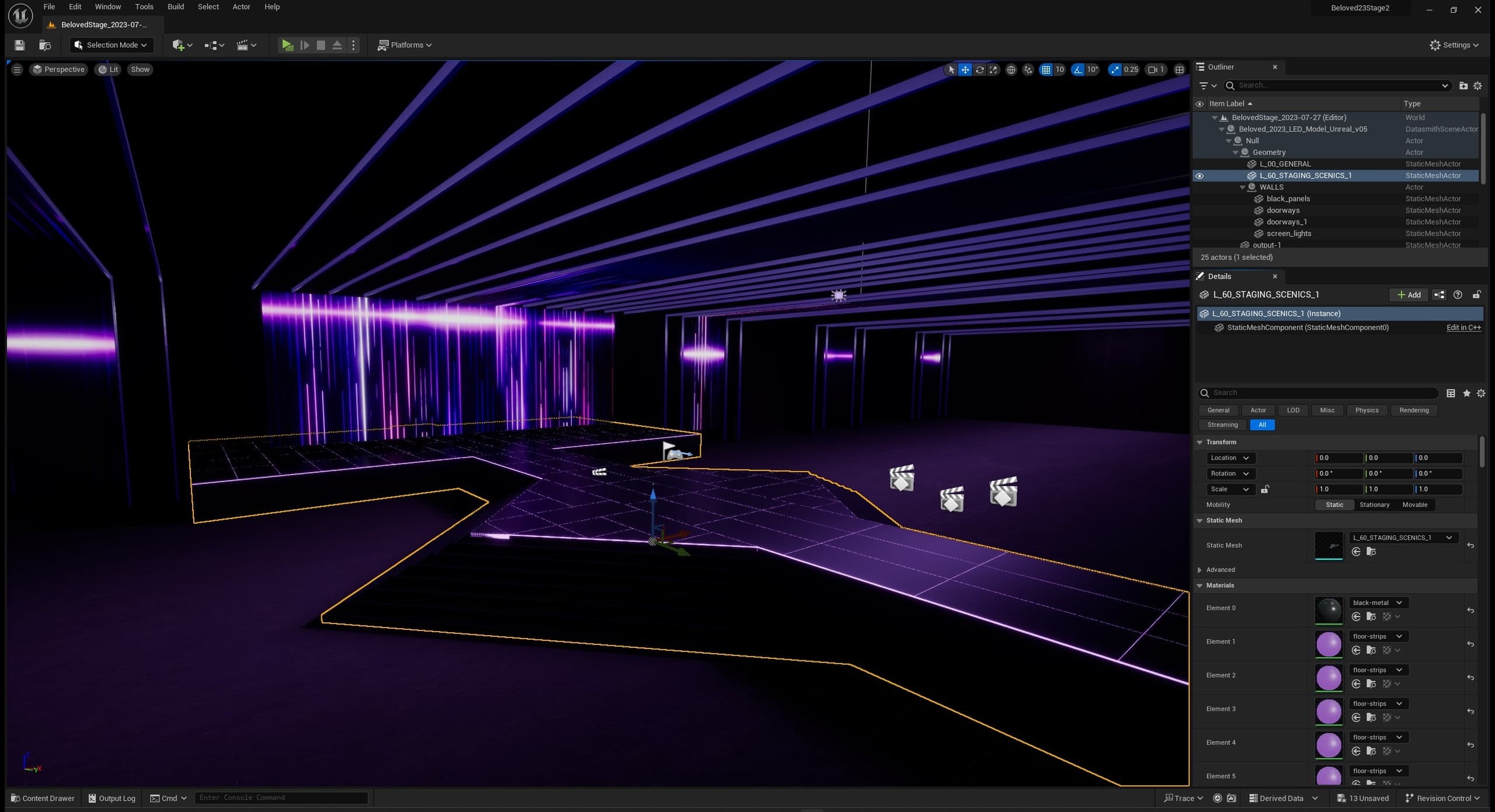 I reconstructed the entire stage in Unreal Engine as a virtual space, using assets provided by the venue production and templates provided kindly by Joe Wiggleston and Will Fortanbary from Brand Apart.